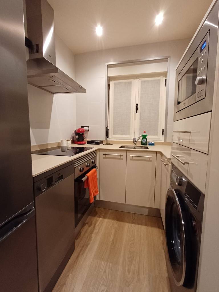 Apartamento con dos habitaciones individuales con camas dobles. 1 Baño con ducha, cocina completamente equipada y salón comedor: